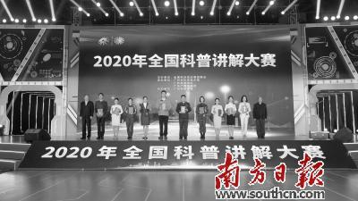 11月13日,以“科技抗疫 创新驱动”为主题的知名科普品牌活动——2020年全国科普讲解大赛在广东科学中心圆满落幕。来自国家部委、军队、地方和澳门特别行政区的73个代表队234名科普达人齐聚羊城,讲述科技知识,解释科学现象,呈现了一场精彩绝伦、妙趣横生、科学与艺术融合的科普盛宴。